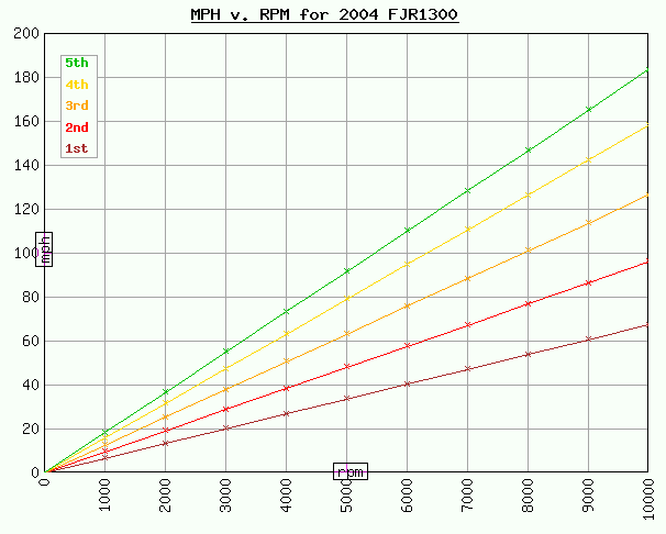 By default, the table on the right will show the mph for each 1000 rpm in all the gears. The increment and the highest rpm may be changed by editing the "rpm increment" and "maximum rpm" values and pressing the "submit" button