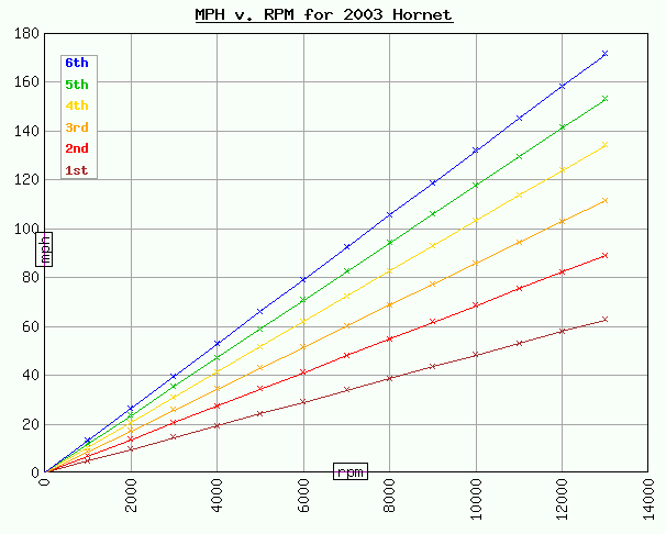 This gear calculator is set as default to the 2003 Hornet