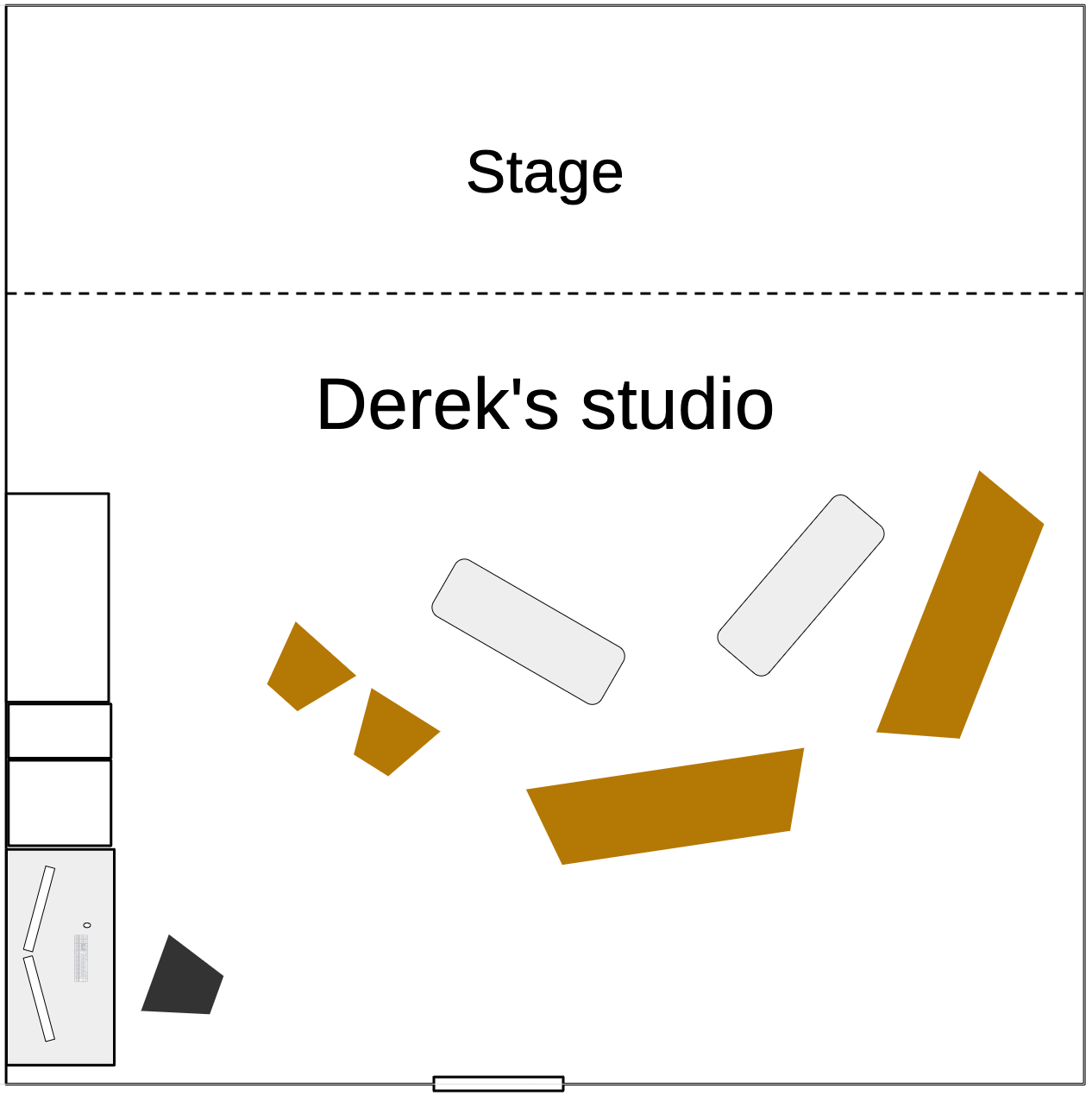 Derek, shook his head, then "Come into the studio, we can sit down in there. Anyone want any tea or coffee?