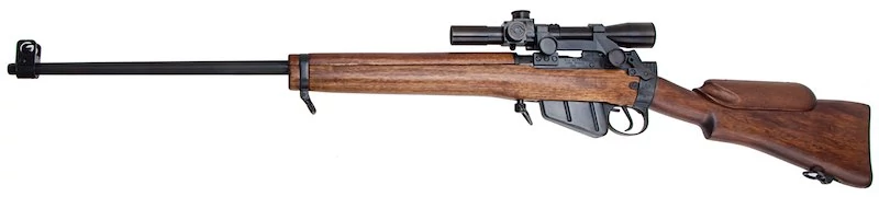 "Lee Enfield L42A1. Ammunition: seven point six two. Good reliable sniper rifle. No longer in service. Superseded by the L96A1 around 1985." As she was saying this, she checked the safety catch but did nothing else.