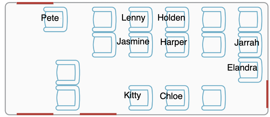 Having introduced Pete, they made their way to the minibus, where Pete opened the rear emergency door and lifted their cases in as the group took their seats, Lenny and Jasmine in a double with Kitty in the single beside them, Holden and Harper sat together, Chloe in the single beside them, Jarrah and Elandra chose to sit in the back row.