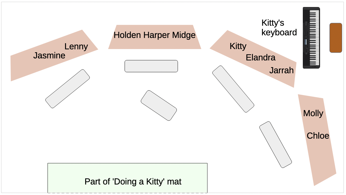 Kitty led Harper, Holden, Jarrah and Elandra to the lift, the others took the stairs. Reaching the top of the stairs, they found Kitty fending off the crowd of girls surrounding the visitors. Molly clapped her hands, "Space!"
